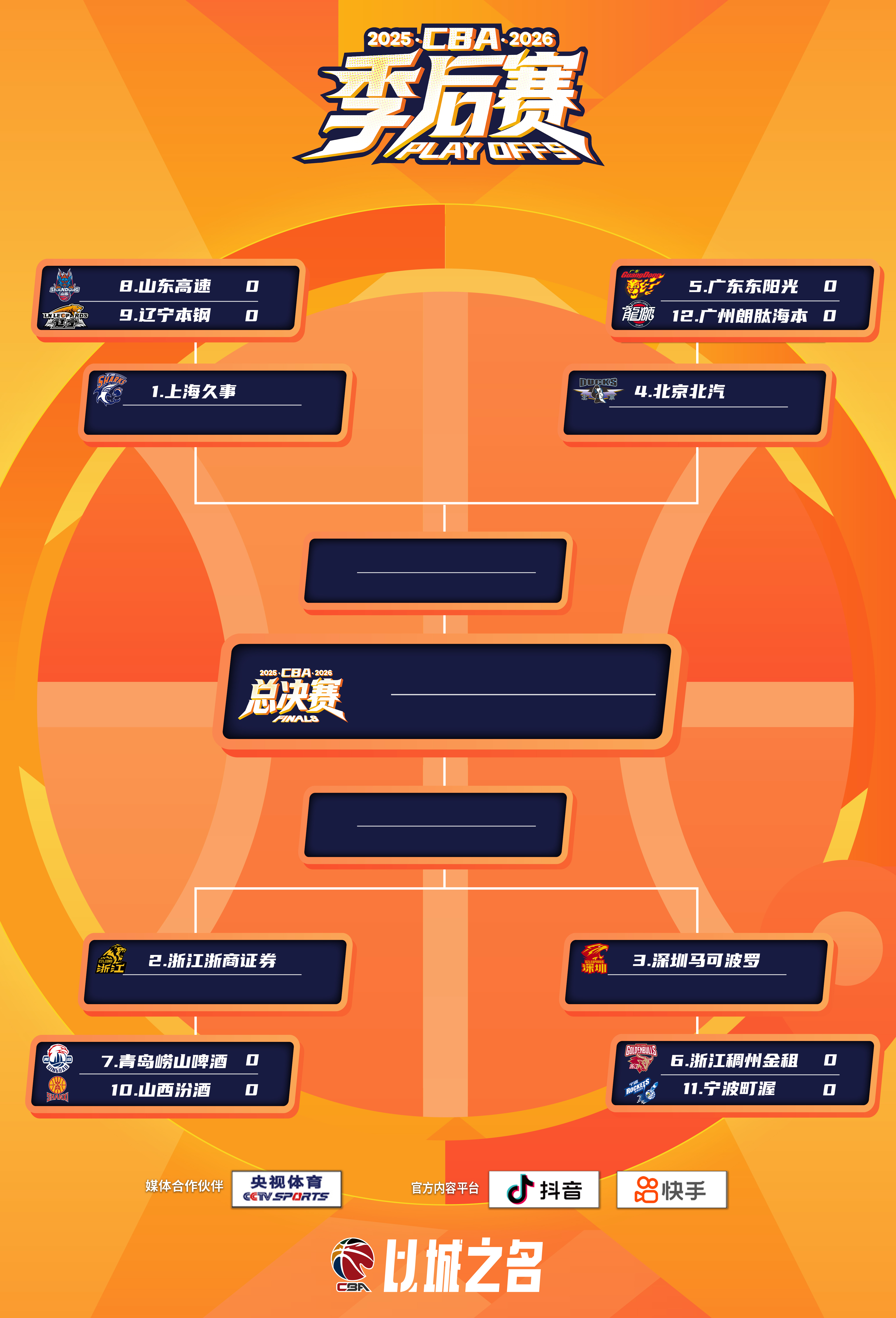 央视网消息:北京时间4月25日,2025-2026赛季CBA常规赛收官,季后赛对阵随之出炉。